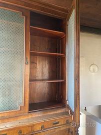 Mobile credenza con alzata a vetri probabilmente in noce massello, tipica del periodo tra la fine dell'Ottocento. Composta da un corpo inferiore con ante e cassetti, e una parte superiore (alzata) con ante vetrate.