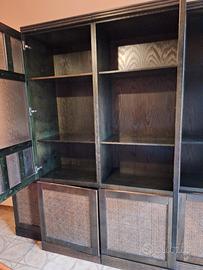 mobile in robusto legno massello con ante superiori in vetro e ante inferiori in rattan.