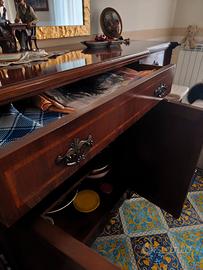 Mobile credenza in legno massello ciliegio stile classico eclettico arte povera in ottime condizioni . Misure 2.20 lunghezza profondità 57 e altezza 110 Vendo anche lo specchio volendo.