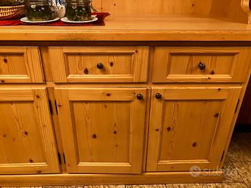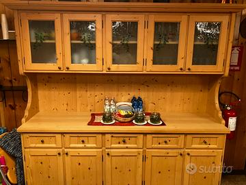 Vendo mobile-credenza rustico in legno come da foto, misure: altezza totale 210cm, larghezza 220cm, profondità 0,62. Ritiro a carico acquirente sul posto.