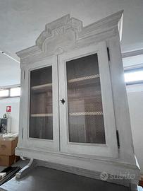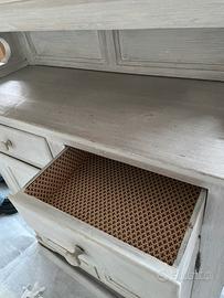 Credenza d’epoca n legno, completamente restaurata, verniciata in mordente bianco, effetto shabby chic.