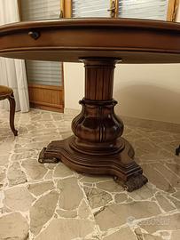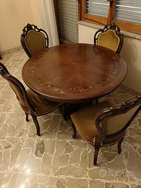 In abbinamento tavolo rotondo con lo stesso intarsio con prolunghe esterne al tavolo + 4 sedie