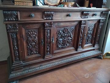Vendesi mobile credenza da soggiorno stile rinascimento. È disponibile nello stesso stile un tavolo con sedie. Ritiro a carico dell'acquirente.