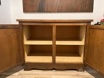 Mobile credenza in legno misure 120x52 h.90 in buone condizioni, una crepa sul decoro dell’anta come da foto.