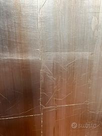 Lo stile può essere descritto come Neo-Barocco o con forti influenze Rococò, reinterpretato in chiave moderna. La finitura in foglia d'argento e con patina oro chiaro con un effetto invecchiato o craquelé le conferisce un aspetto lussuoso ma vissuto. I dettagli ornamentali, le curve morbide e la finitura metallica dorata o argentata conferiscono al mobile un'aria sontuosa e ricercata.