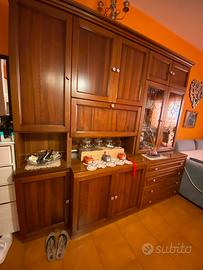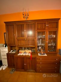 Vetrina porta bicchieri/ piatti in materia noce colore marrone con 4 cassetti porta tovagliole tovaglioli e tanto altro misure h211 p56 L220