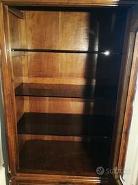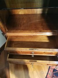 Mobile cristalliera con due cassetti e ripiani.