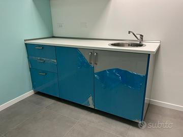 3 moduli da 60 cm con cassetiera e due ante, lavello inserito a destra.
