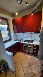 vendo mobile cucina con ante color bordeaux, scocca rovere scuro e pensili bianchi. compreso di lavandino 2 vasche, piano cottura Franke 4 fuochi . Forno e lavastoviglie non compresi