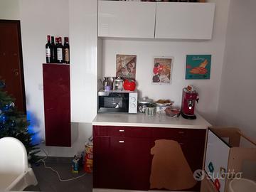 Vendo mobile per cucina con anta difetta ma ottime le restanti parti. Misure: modulo centrale lungo 1 metro e 20,profondo 60 cm; modulo superiore 120 x 36. Colonne verticali da 132 x30 e 132x 95