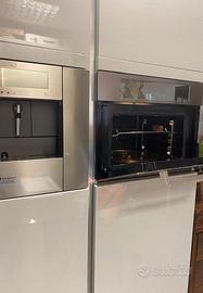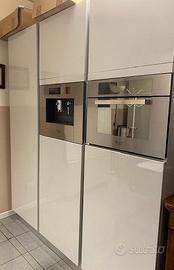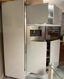 Mobile cucina laccato lucido grigio: colonna frigo e frizer con ripiano superiore, colonna con macchina caffe' con sportello inferiore e superiore con ripiani e colonna con forno con sportello inferiore e superiore con ripiani. lungh.186xlarg.60xalt.210.
