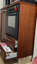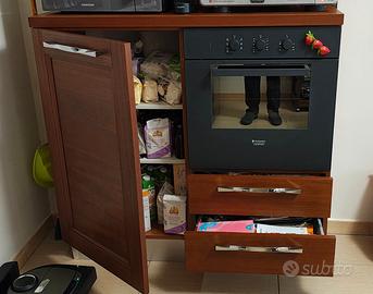 Vendo mobile cucina marca Lube monoblocco, composto da portaforno con griglia di aerazione e due cassetti e mobile dispensa con mensole separatrici. Forno elettrico escluso Dimensioni: Lunghezza 120 Profondità 61 Altezza 112