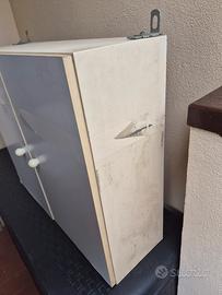 Mobile cucina da appendere. Usato. Misure: lunghezza: 64 cm; altezza; 54,5 cm; larghezza: 20,5 cm Come sulle porte è stato messo scotch, rimasto segno. Un'po macchiato su 2 lati. Può essere rivestito con la carta adesiva Ritiro a Perugia.