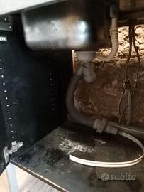 Mobile cucina Ikea vecchio modello con piano in acciaio. La struttura in ferro è sempre buona ma presenta segni di ruggine e sarebbe da riverniciare. Il mobile sotto lavello è in legno con un po' di segni di usura dovuti al tempo . Insieme vendo anche la cucina , con 4 fornelli e il forno . Tutto funzionante ma come si vede in foto sciupato dal tempo nella verniciatura.