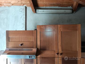 Mobile x cucina in linea mt.2,65 con basi e pensili ,più 2 pensili opzionali ,1 cappa funzionante eventualmente posizionare su una cucina a gas,e 1 pensile da 80 cm.vedere foto disegno tecnico con dimensioni totali,struttura in laminato beige e adatte ante in noce massello,adatta x apt.mare/montagna,no lavabo/.vendo solo adomicilio.