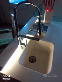 base 120 x 60 cucina in frassino laccata nuova con due cassettoni estraibili e piano in Corian con lavello integrato senza giunture..compreso rubinetto mix con doccetta come foto. compresa alzatina e luce led .aggiungendo un pianetto cottura diventa una cucina monoblocco e nuovo ..ex mostra