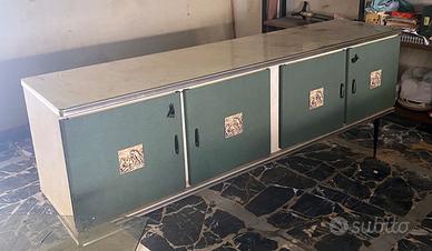 Vendo mobile anni 50/60 con top in vetro, ampia specchiera e particolari finiture in rilievo.