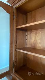 Mobile vintage antico in legno massello, in ottime condizioni. Il mobile inferiore e la vetrina superiore sono 2 elementi separati, questo permette di inserirli in maniera più flessibile nell’ arredamento e non necessariamente usarli insieme. Questo rende inoltre più semplice il trasporto.