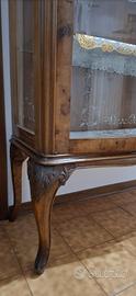Credenza intagliata in Legno con ripiani in vetro con seguenti misure: -Profondità 35cm -Altezza 146 cm -Lunghezza 100 cm Ideale per ambientazioni quali ingresso salotto e soggiorno