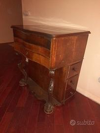 Mobile d'epoca toilette con specchiera in stile Luigi Filippo 1 cassetto frontale 2 cassetti laterali 1 antina laterale impiallacciatura in radica di noce Dimensioni h90xL80xP60 circa