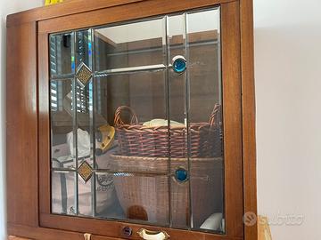 Mobile Vetrinetta inizio '900, in legno di palissandro con applicazioni in bronzo inserti centrali intarsiati, vetri laterali finemente decorati e maniglie decorate in osso.