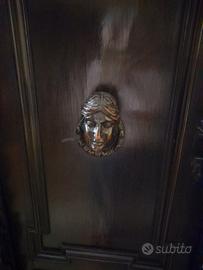 Mobile in legno con sculture adatto ad arredamento importante o studio professionale. Smontaggio e trasporto a carico dell'acquirente. Pian terreno.