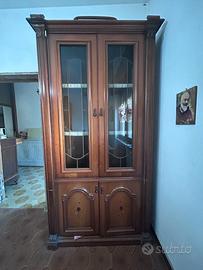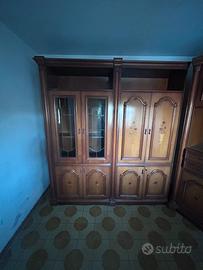 Si tratta di un 4 mobili scomponibili che fungono da credenze, due dei quali hanno anche la vetrinetta, realizzati in legno con un design classico e semplice ( infatti vi si trovano alcuni fiori disegnati su alcune porte.)