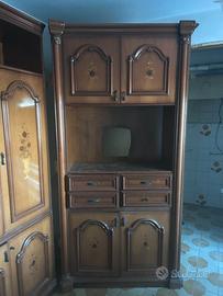 Il mobile è stato usato per molti anni con cura e presenta solo alcuni segni del tempo, quindi nel suo complesso perfettamente funzionate, vi è solo un buco in uno dei 4 mobili dato dal fatto che il posto era destinato alla televisione e quindi necessario per un attacco, ma riparabile.