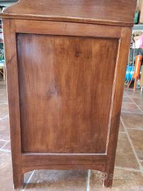 Mobile antico in legno, stile impero, con base in marmo, con cassetto e due ante. Presenta difetti legati all'usura, prevalentemente sui piedi.