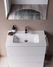 Vendo composizione mobile da bagno, mod. SYSTEM, "originale", basato a terra, di primaria azienda italiana leader nell'arredobagno, NUOVO, da expo-sala mostra, MADE IN ITALY, c-imballo originale ed integro, composto da: nr. 1 base portalavabo con nr. 3 cassetti di dim. larga 80x45,5 di prof. x 80cm di h. , già assemblata, in finitura laccato bianco opaco, nr. 1 piano c/lavabo integrato largo 81cmx46,5x2cm di spessore, in ceramica smaltata bianco Eur dotato di troppopieno, nr. 1 specchio di dimensioni largo 80x70cm di h con telaio cromo lucido, nr. 1 faretto a Led, nr 1 portasciugamani colore bianco mod. Navarro lungo 35cm. Design essenziale, massima funzionalità, flessibilità e libertà compositiva, scopriamo SYSTEM, la nuova collezione firmata da questa primaria azienda di mobili da bagno, pensata per arredare con stile e personalità il bagno contemporaneo. SYSTEM significa diverse soluzioni di arredo. Un programma caratterizzato da mobili a terra o sospesi, dalle diverse proposte lavabo, e dall'ampia gamma di finiture disponibili. Un approccio rigoroso e geometrico consente la valorizzazione dello spazio attraverso un impronta di stile sobria e moderna. Ogni "prodotto" di questa azienda viene realizzato in Italia, ma ciò che lo rende un esempio di Made in Italy (al 100%) sono i suoi valori: la creatività e la tradizione nel mondo del mobile che risale al 1987, e la qualità caratteristica naturale per un azienda che si confronta giornalmente con il proprio pubblico e le sue esigenze. Tutto ciò si traduce in un esperienza e in un Know-how specifico. Montaggio escluso. Miscelatore escluso. Eventuale trasporto / consegna tramite corriere espresso, da definire in funzione della località di destinazione finale.