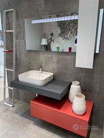 Mobile da bagno Artesi modello Filo sospeso, colore aragosta opaco/bianco opaco composto da: