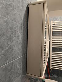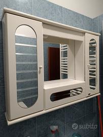 Vendo mobile-specchiera da bagno di colore bianco con 3 ante (2 laterali e 1 inferiore) come si vede dalle foto. Con attacco elettrico per la luce. La specchiera è in ottime condizioni generali. Dimensioni: lunghezza 100 cm - altezza 70 cm - profondità 15 cm