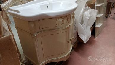 Composto da base + specchio intagliato + lavabo in ceramica )opzionabile piana in marmo)