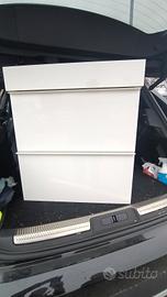 Vendo mobile da Bagno Ikea laccato bianco lucido con 2 cassetti alti. Larghezza 60 cm. profondità 45 cm. Il mobile è già corredato di lavabo e rubinetto miscelatore Ikea modello Lundstar Kiva in ottime condizioni. Il solo miscelatore è in vendita nuovo da Ikea ad 80 euro (visibile anche sul loro sito). Solo ritiro a mano vicino a Bergamo.