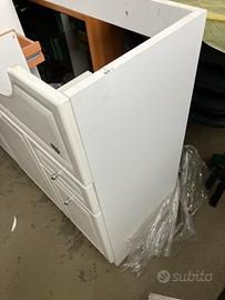 Mobile da bagno in legno laccato bianco completa di specchiera, armadietto pensile ed illuminazione