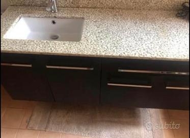 Vendo per problemi di spazio monile da bagno rivestimento top effetto sassolini colore wenghe’ mis.146 cm lunghezza profondita’ 53 cm altezza 57 cm ottimo prezzo 300 ottime condizioni