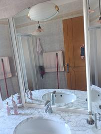 Vendo mobile da bagno acquistato nel 2000 ma tenuto come nuovo. Il mobile è alto 195 cm, profondo 60cm e largo 130cm. Come si evince dalle foto è un mobile molto particolare, per intenditori. Ha una forma tipo conchiglia , il ripiano in marmo ed uno specchio grande. È anche molto capiente
