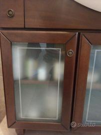 Vendo mobile da bagno artigianale come nuovo completo di rubinetto e specchio con applique e lampadario abbinato, possibilità di avere anche il restante arredo bagno (portasciugamani snodo come da foto, portasapone e spazzolino, portascopino ecc.... tutto in coordinato).