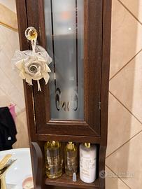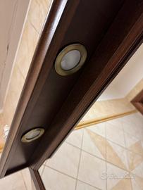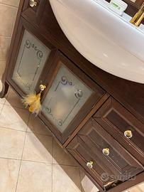 Vendo mobile da bagno completo in stile classico/elegante, in legno scuro con specchiera integrata, luci incassate, lavabo in ceramica e rubinetto color oro.