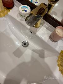 Lavandino perfetto, rubinetto oro perfettamente funzionante, luci integre.