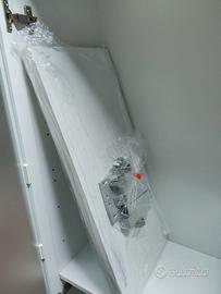 Vendo mobile da bagno nuovo in legno e vetro satinato. Altezza complessiva con piedi da montare pari a 2 mt, profondità 34cm, largo 70cm