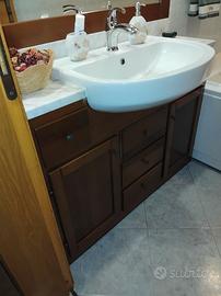 Mobile da bagno con lavandino incorporato + lampade, top in marmo con alzatina color grigio chiaro misure altezza 1,91 larghezza 1,09 profondità mobile 0,33 profondità lavandino 0,54