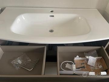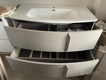 Mobile da bagno Nuovo in cartone originale colore laccato grigio larghezza 100 cm marca Royo modello WAVE 2 cassetti allestimento cassetti top