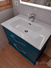 Mobile da bagno sospeso sL 74 x H 55 x P 46 cm blu laccato opaco, 2 cassetti BADEN HAUS Tiffany, Leroy Merlin. Con lavamo ceramica bianca e rubinetto Ideal Standard. Compreso specchio L 60 x H80 retroilluminato