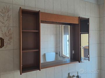 Vendo mobile da bagno in vero legno, un pezzo di design che uniace stile e funzionalità. È perfetto per chi desidera aggiungere un tocco di eleganza vintage o mid-century al proprio ambiente. Questo è un arredo solido e di carattere, pronto a valorizzare il vostro bagno. I punti di forza sono sicuramente il materiale, cioé legno massello di alta qualità, il design in stile vintage/mid-century, ma anche la sua funzionalità, con un ampio specchio centrale, scomparti ideali per prodotti di uso quotidiano, una vetrina con anta in vetro fumé e una mensola inferiore per appoggiare e riporre oggetti.