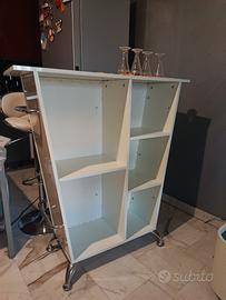 raffinato mobile bar dal design contemporaneo, ideale per arredare con stile l'angolo living, una taverna moderna o un ufficio di rappresentanza. Design: Struttura a trapezio rovesciato, caratterizzata da un rivestimento frontale in ecopelle bianca con lavorazione capitonnè (trapuntata) a rombi. Ogni incrocio è impreziosito da un bottone in cristallo tipo Swarovski, che dona lucentezza e un tocco di lusso. Dettagli: Doppia barra poggiapiedi e corrimano in acciaio cromato lucido. Top superiore in legno laccato bianco, perfetto per la preparazione di cocktail. Accessori inclusi: Set di 2 sgabelli coordinati con base cromata, girevoli e regolabili in altezza, con seduta imbottita in tinta. Stato: Ottime condizioni, pari al nuovo