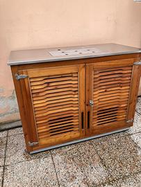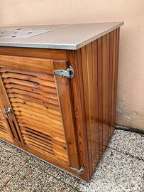 Mobile da bar per spillatrice in acciaio inox e legno, anni ‘60, presenta tre slot per spillatrici ed è in buone condizioni.