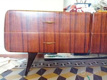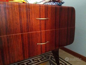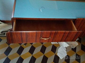 Vendesi mobile risalente a fine anni '50: comò con quattro cassetti, pianale in vetro e grande specchio.