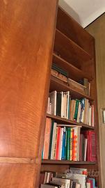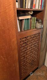 Mobile in legno massello probabilmente noce o ciliegio dal design funzionale con libreria a giorno e vani chiusi, per sfruttare al meglio gli spazi come i corridoi. Stile modernariato caratterizzato da linee pulite e semplicità popolare anni 60 70.