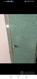 Mobile da cucina anni '50 cm 280x52x192h struttura tamburata laccata panna ante rivestite in formica verde con bordi in legno, buone condizioni